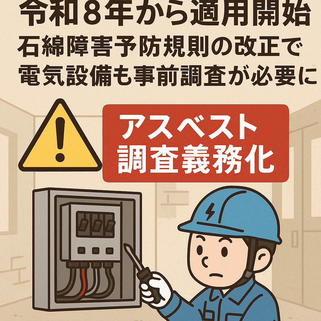 石綿(アスベスト)は過去に広く利用され、その影響は今なお私たちの生活環境に残っています。健康被害の深刻さから、国は段階的に規制を強化してきました。そして令和8年1月1日からは、建築物に加えて工作物の解体・改修工事でも事前調査が義務化され、変電設備や配電設備、送電設備といった電気設備も対象に含まれることとなります。